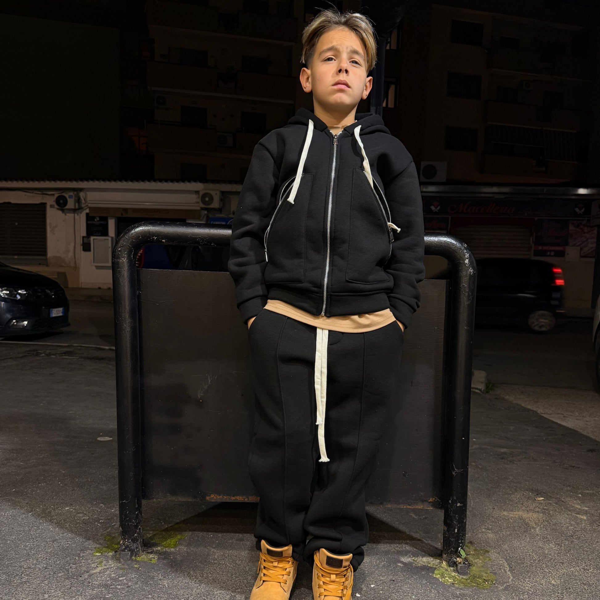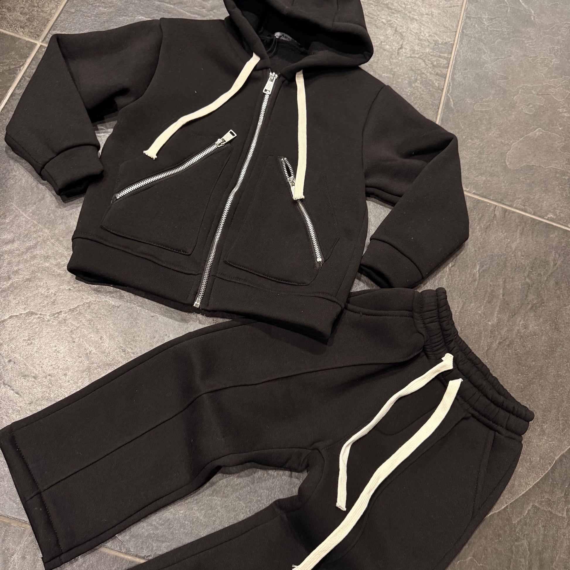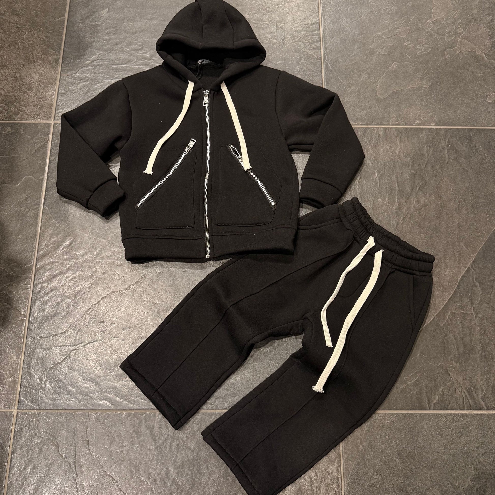tuta bimbo con felpa zip e cappuccio e pantatuta fondo largo