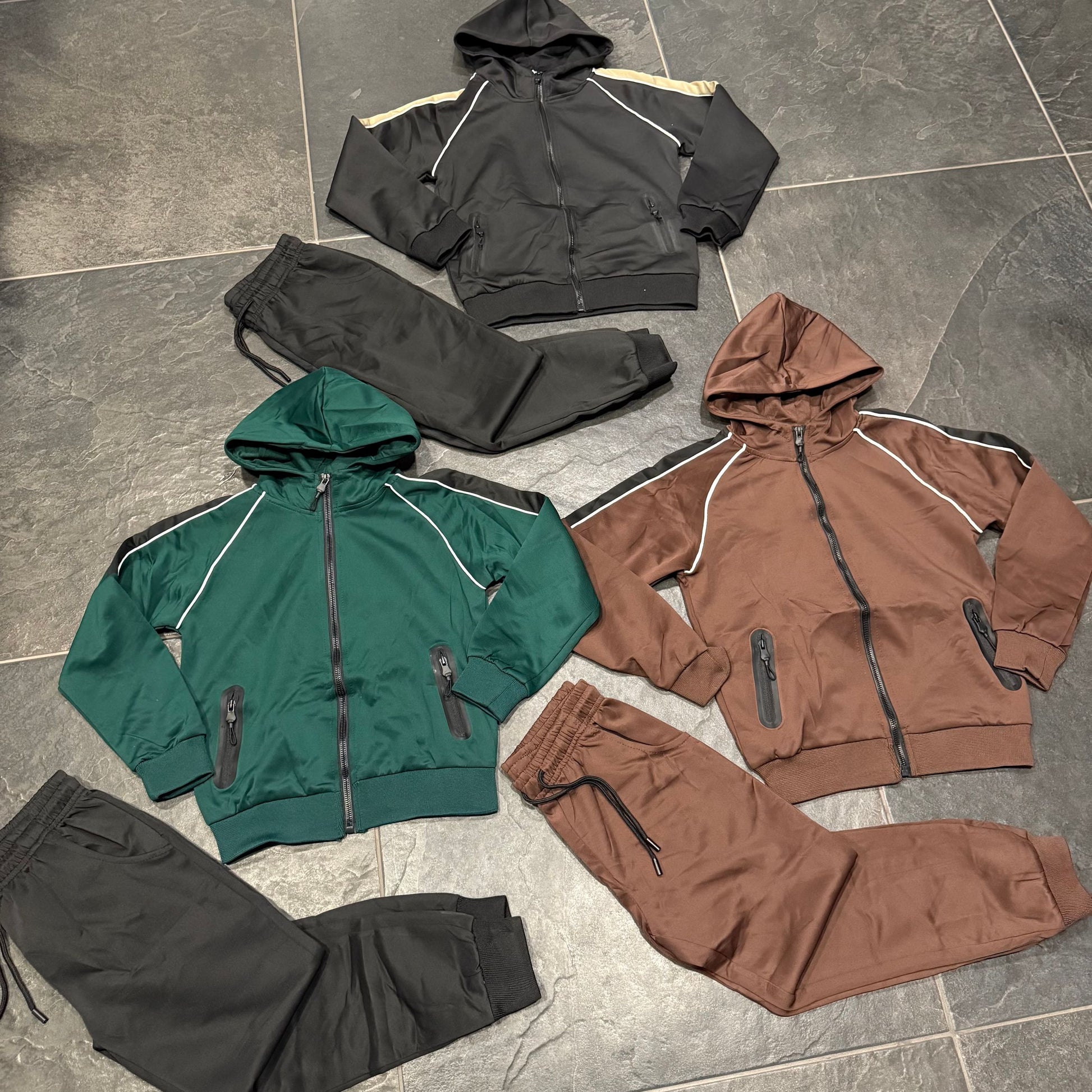 tuta con zip, cappuccio e tasche + pantatuta con elastico alle caviglie