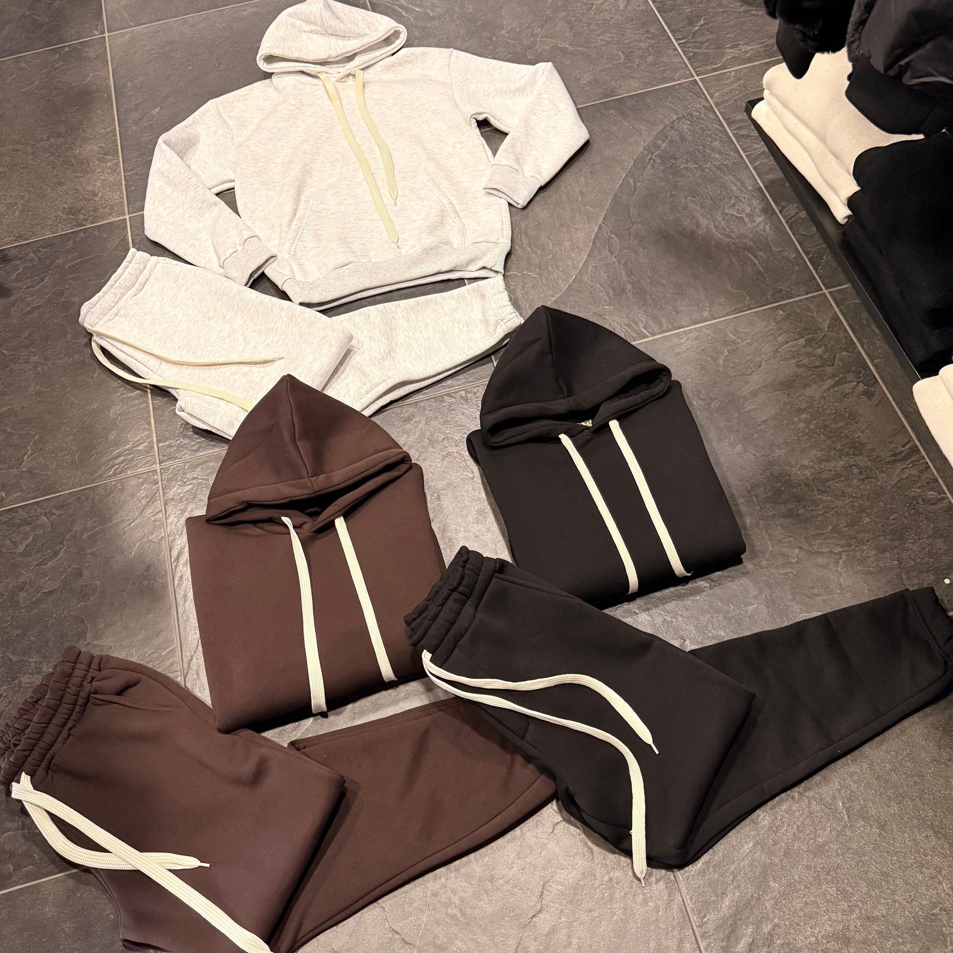 tuta basic felpata con cappuccio e pantatuta con elastico alle caviglie