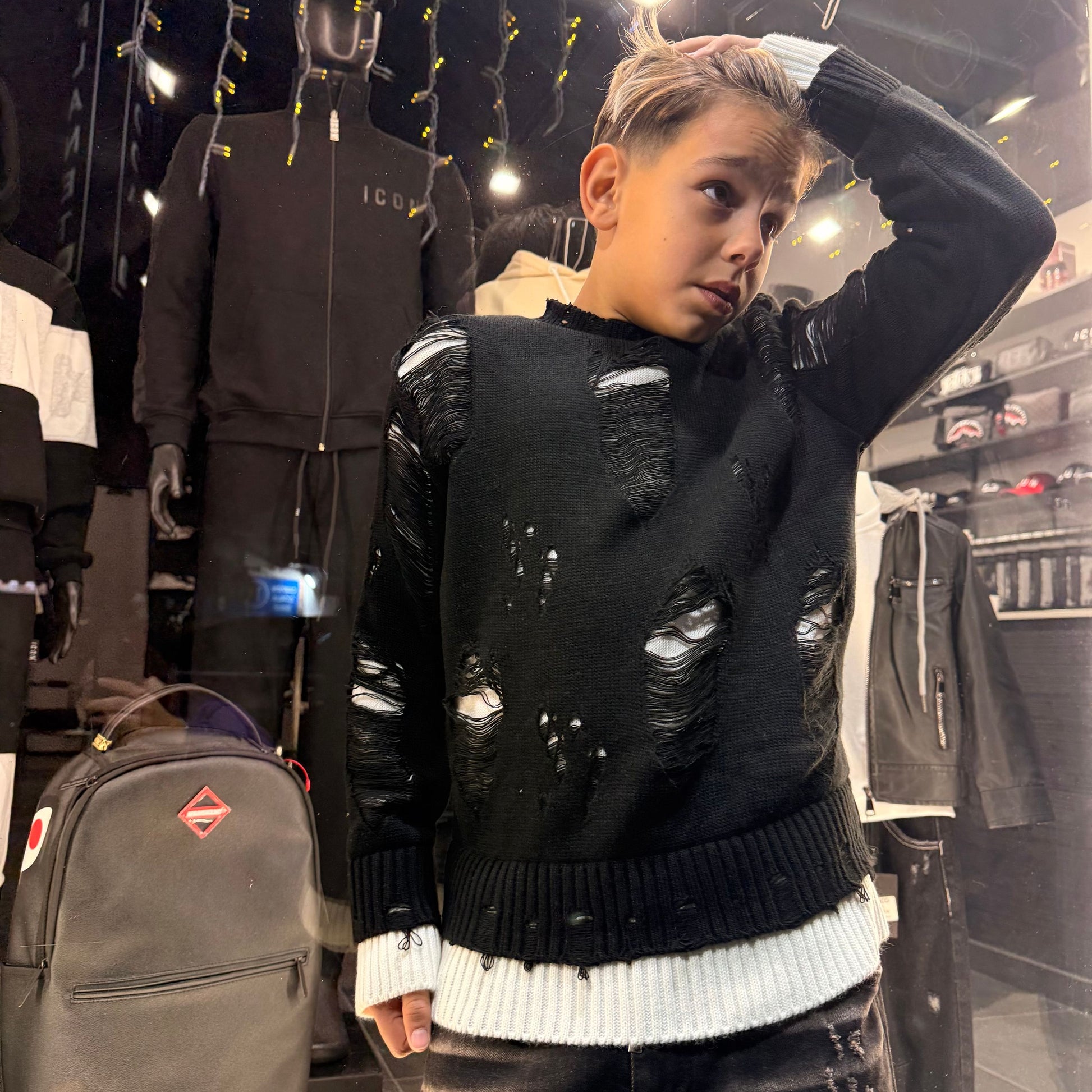 CB ML/DOUBLE MAGLIONCINO NERO - maglieria bimbo - CIANOTIC