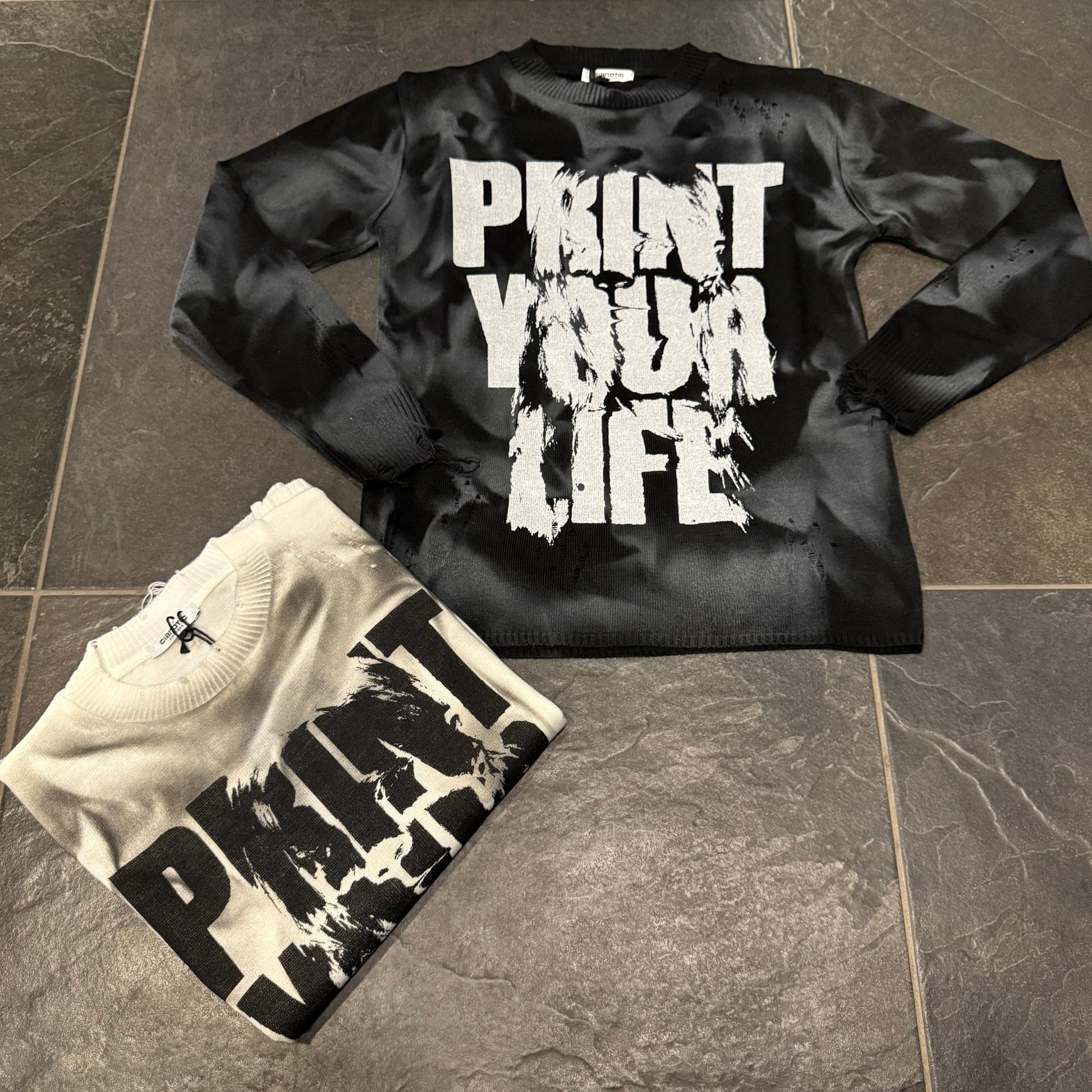maglia in filo junior con rotture e scritte