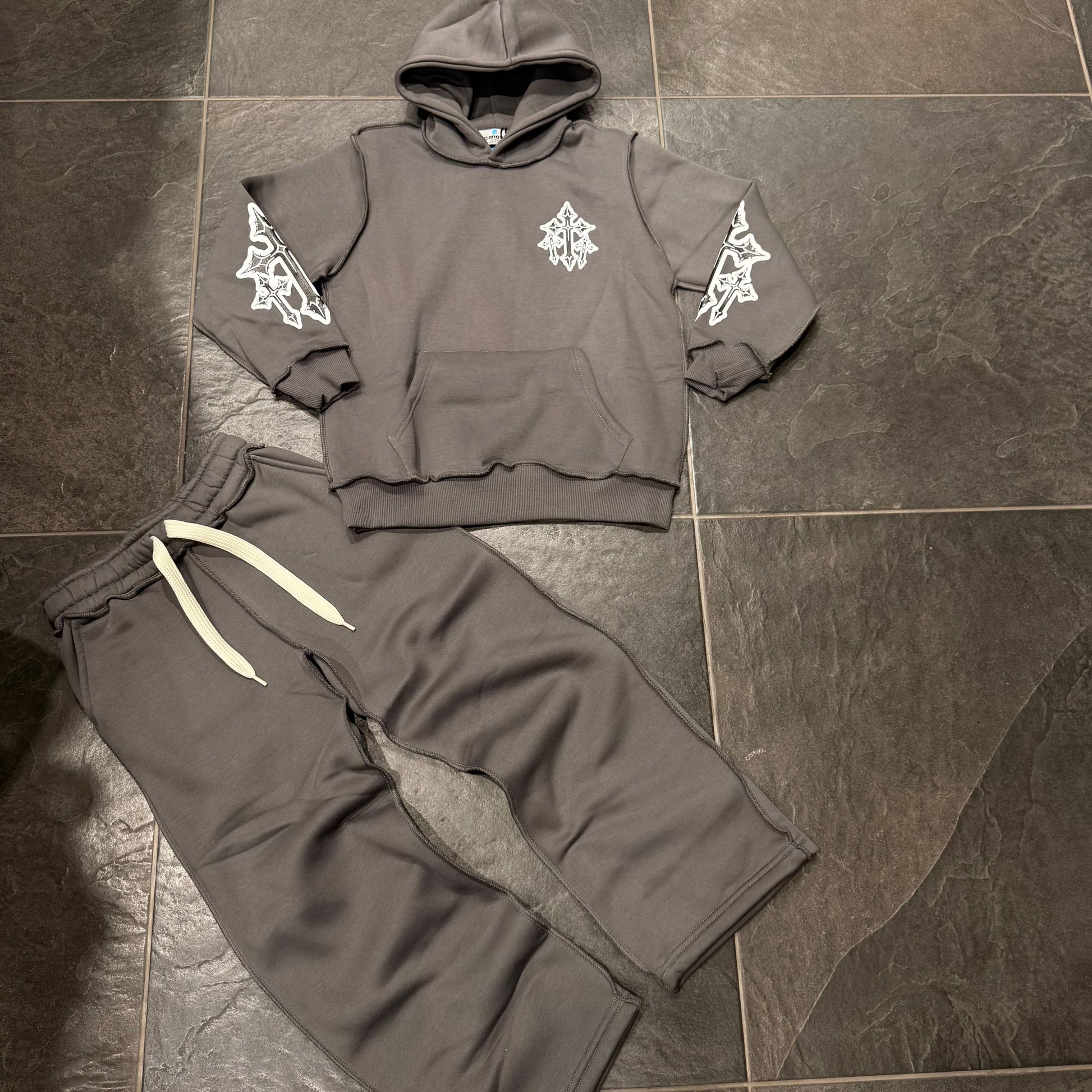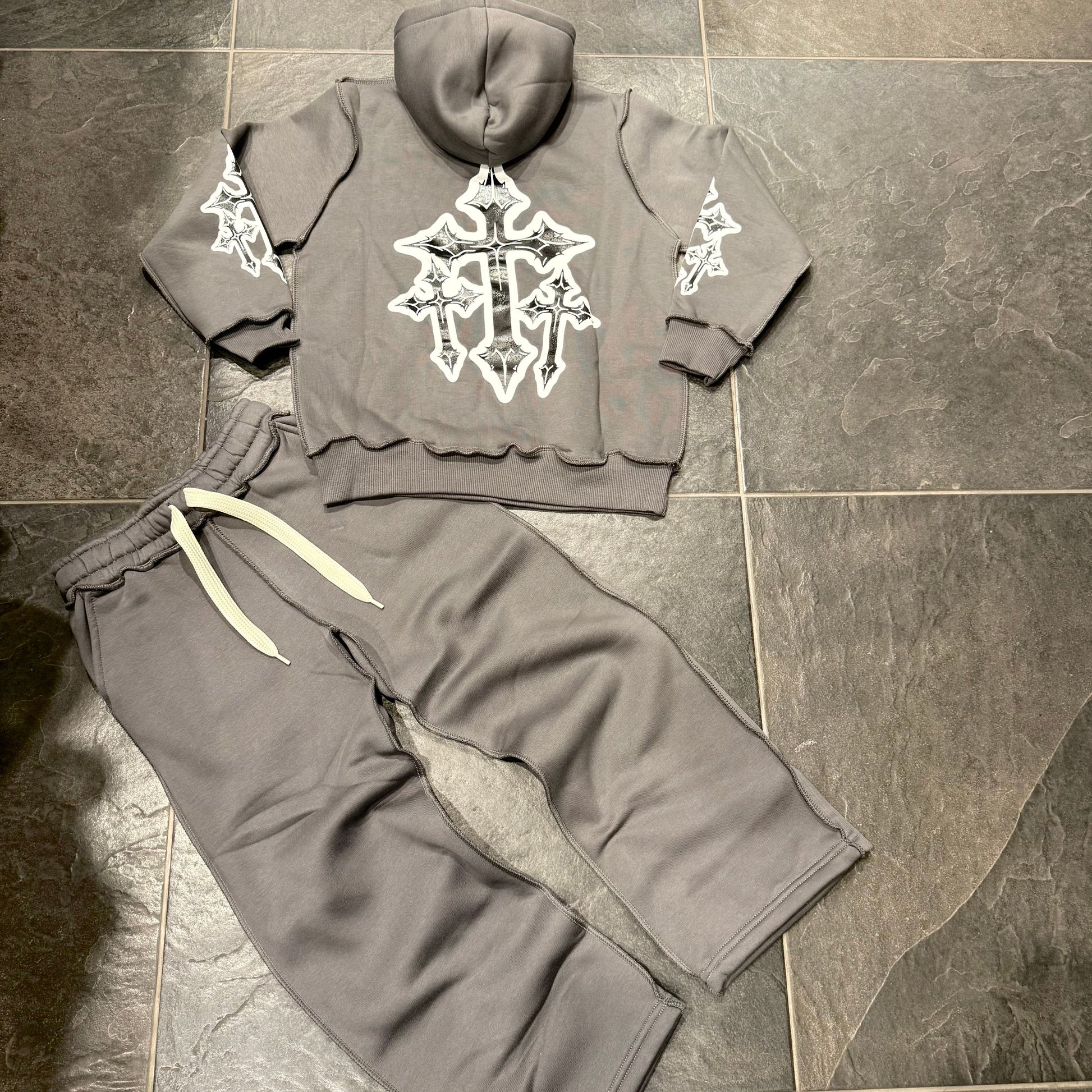-tuta cianotic cucitura inverse e stampa croce + pantatuta fondo largo