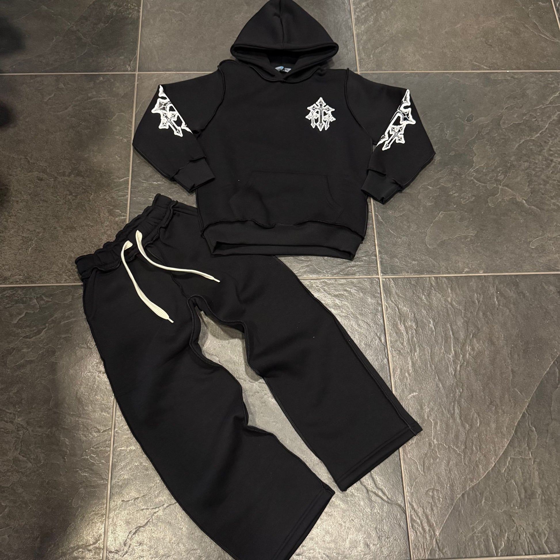 tuta cianotic cuciture inverse e stampa croce + pantatuta fondo largo
