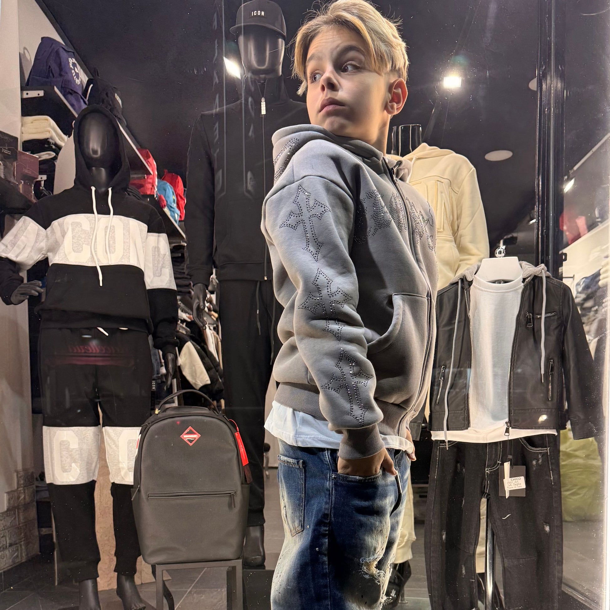 -felpa cianotic junior diamond con cappuccio e zip