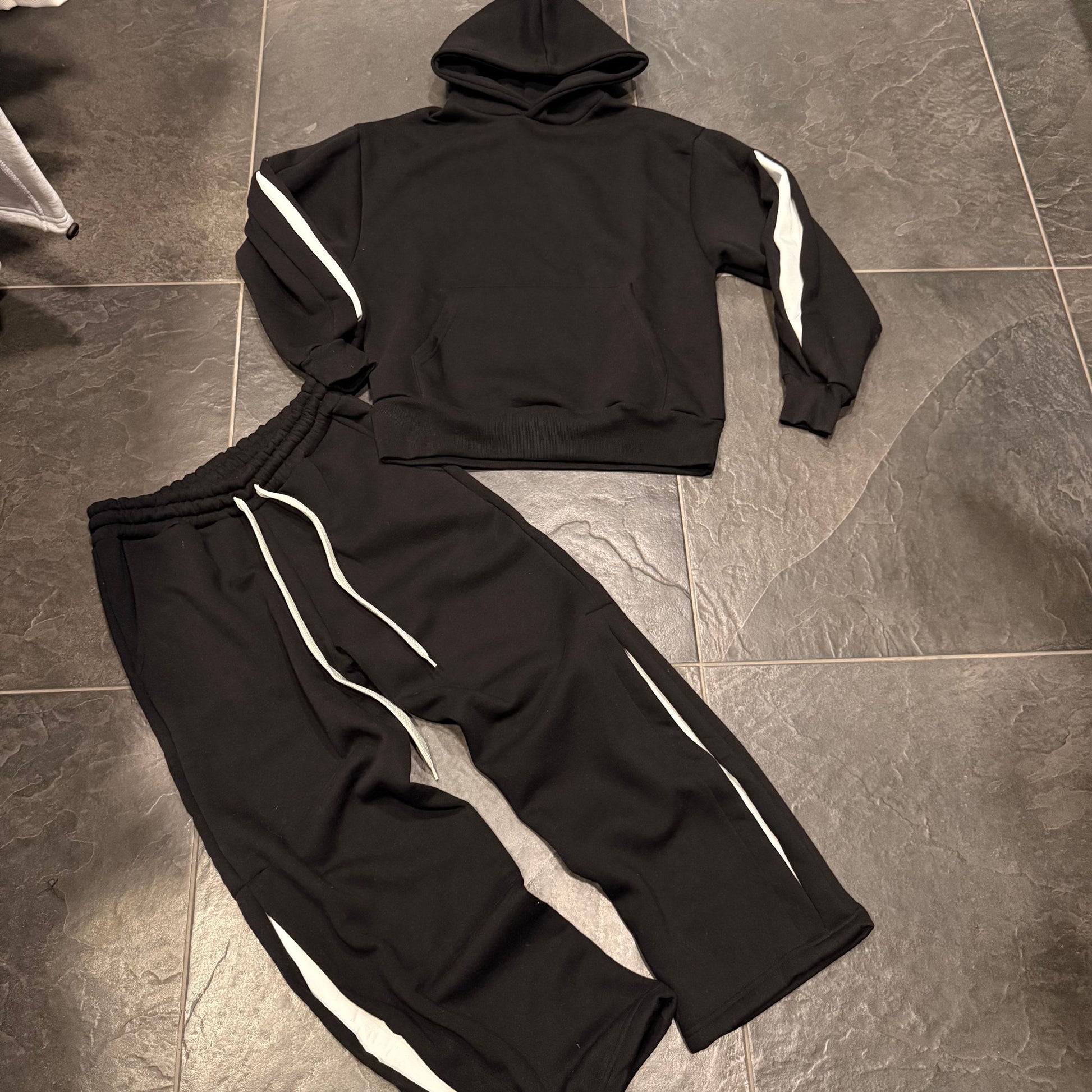 tuta basic felpata con spacchi braccia e interni bianchi + pantatuta fondo largo