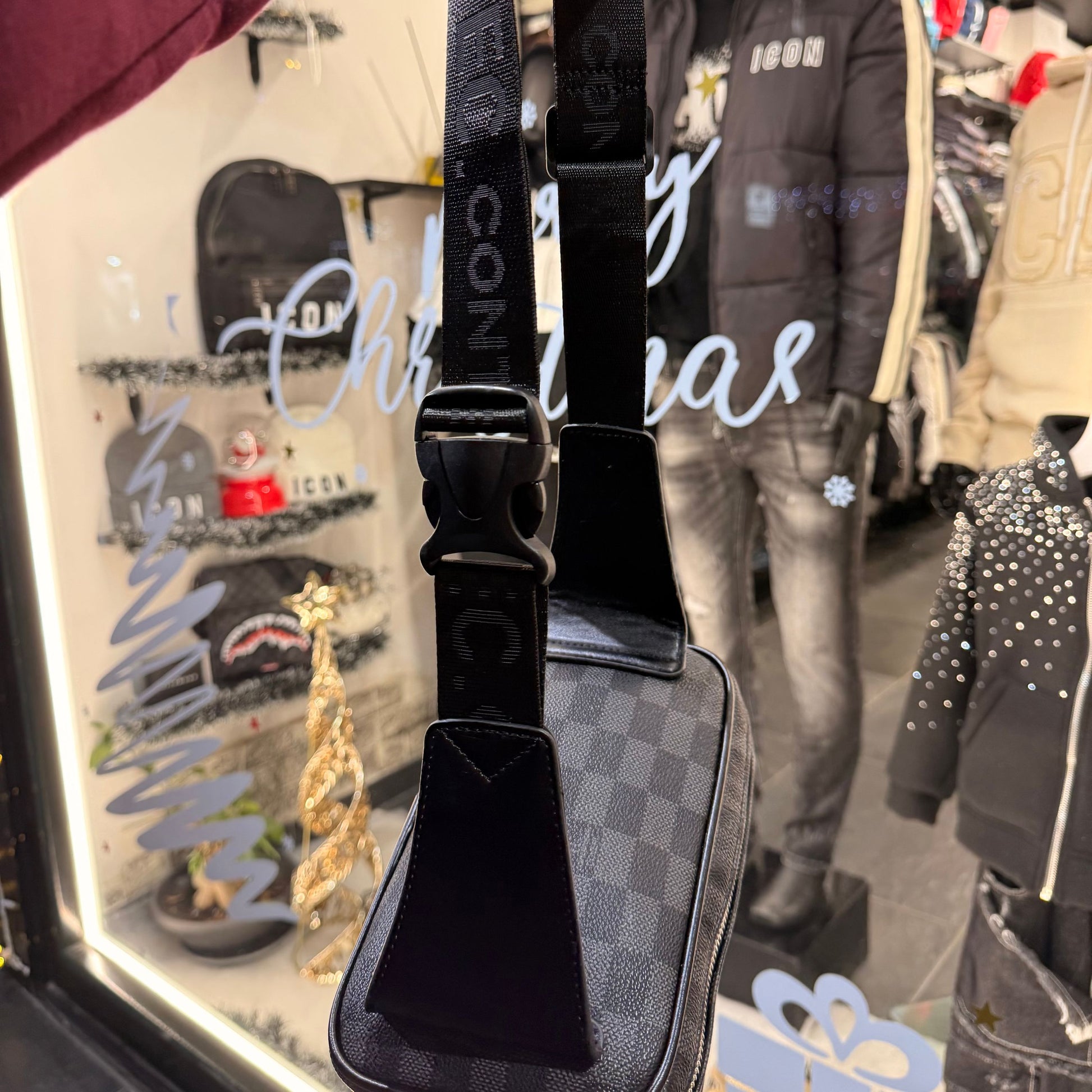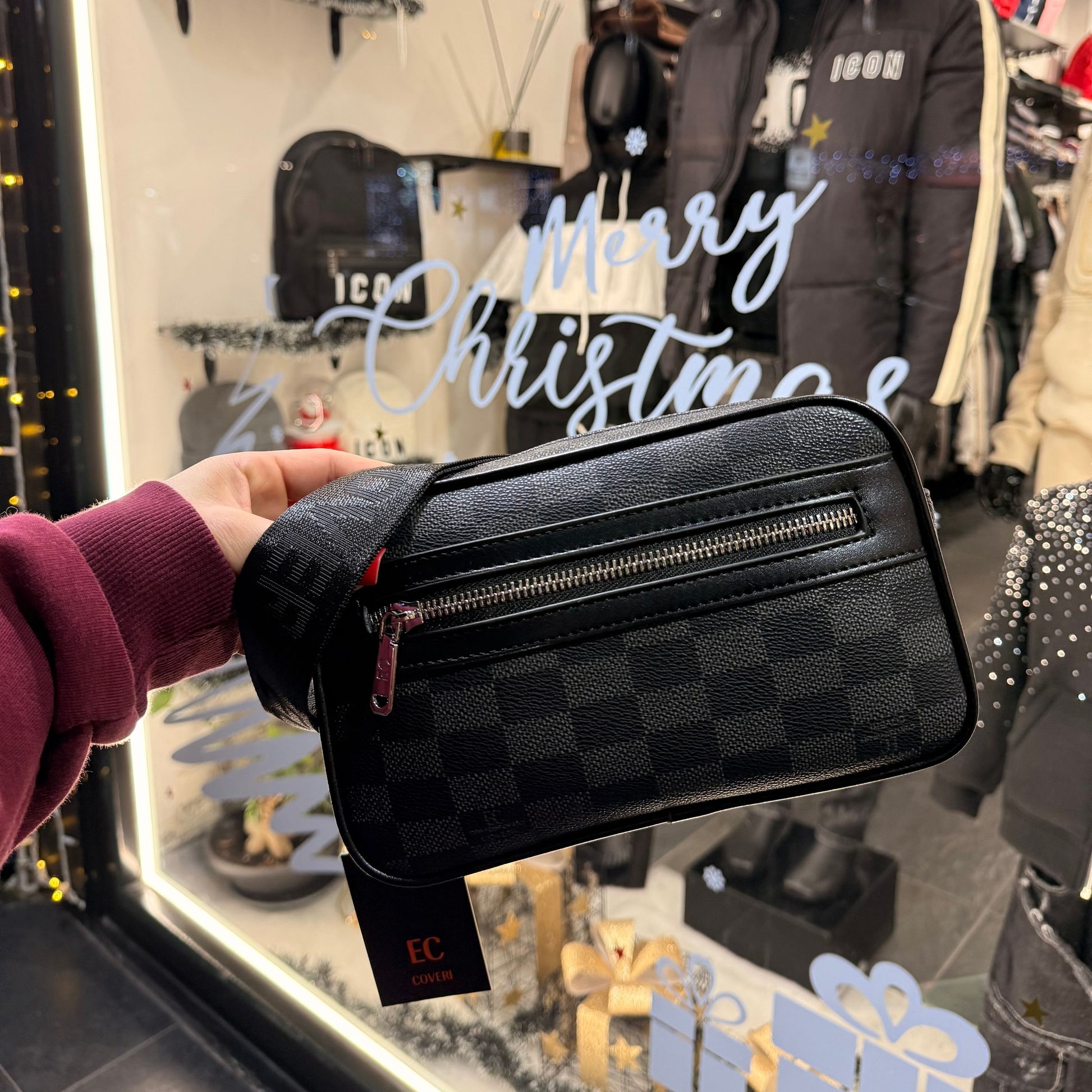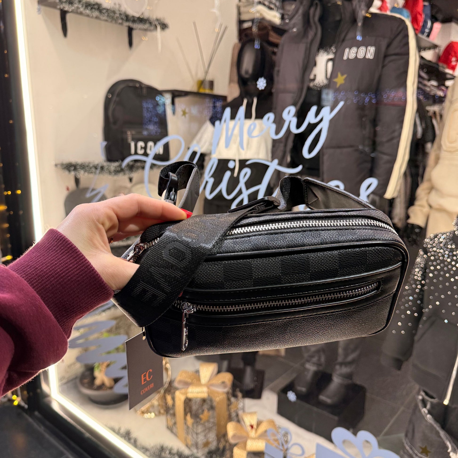 -borsello enrico coveri logato con chiusure zip e tracolla regolabile