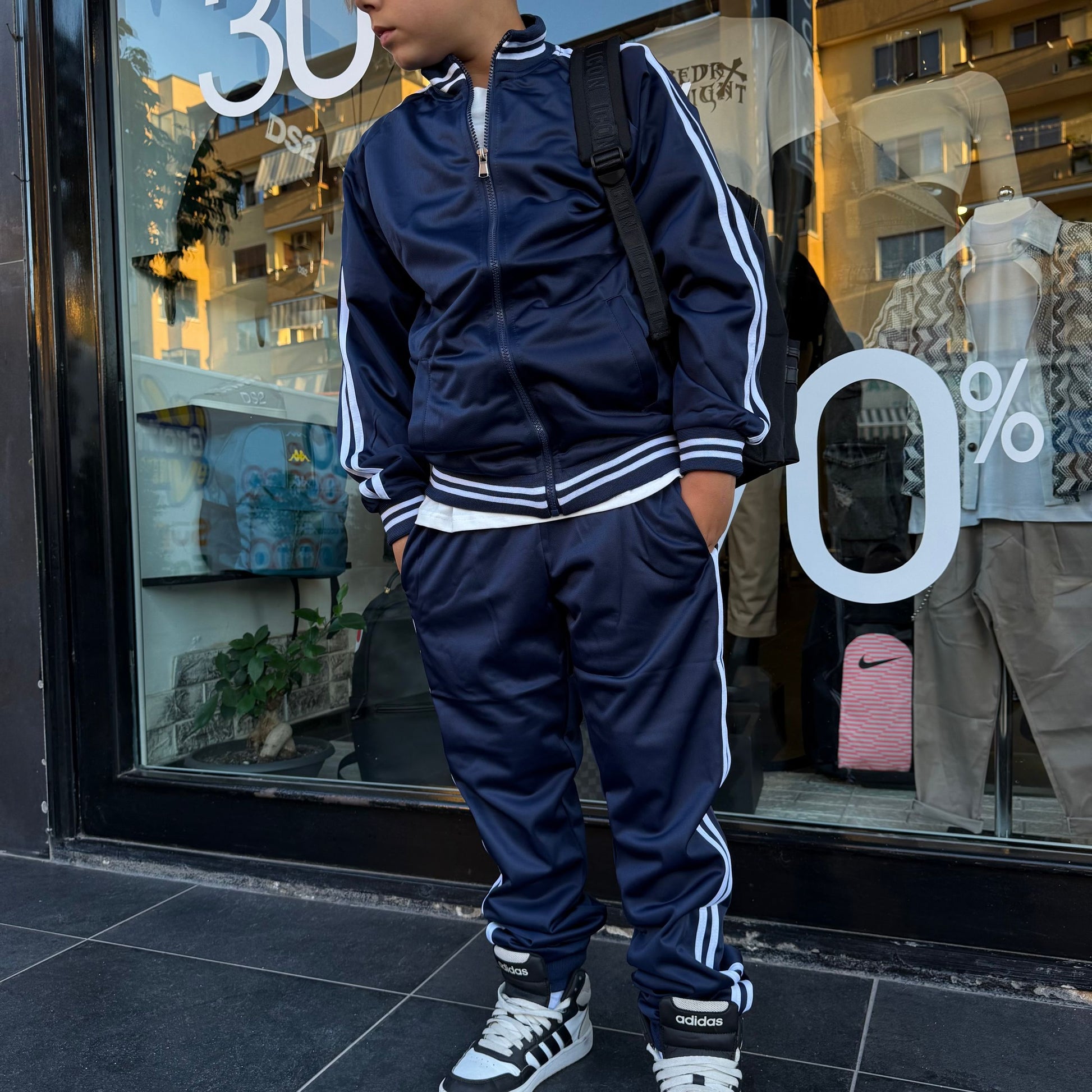 tuta con zip e tasche + pantatuta con elastico alle caviglie