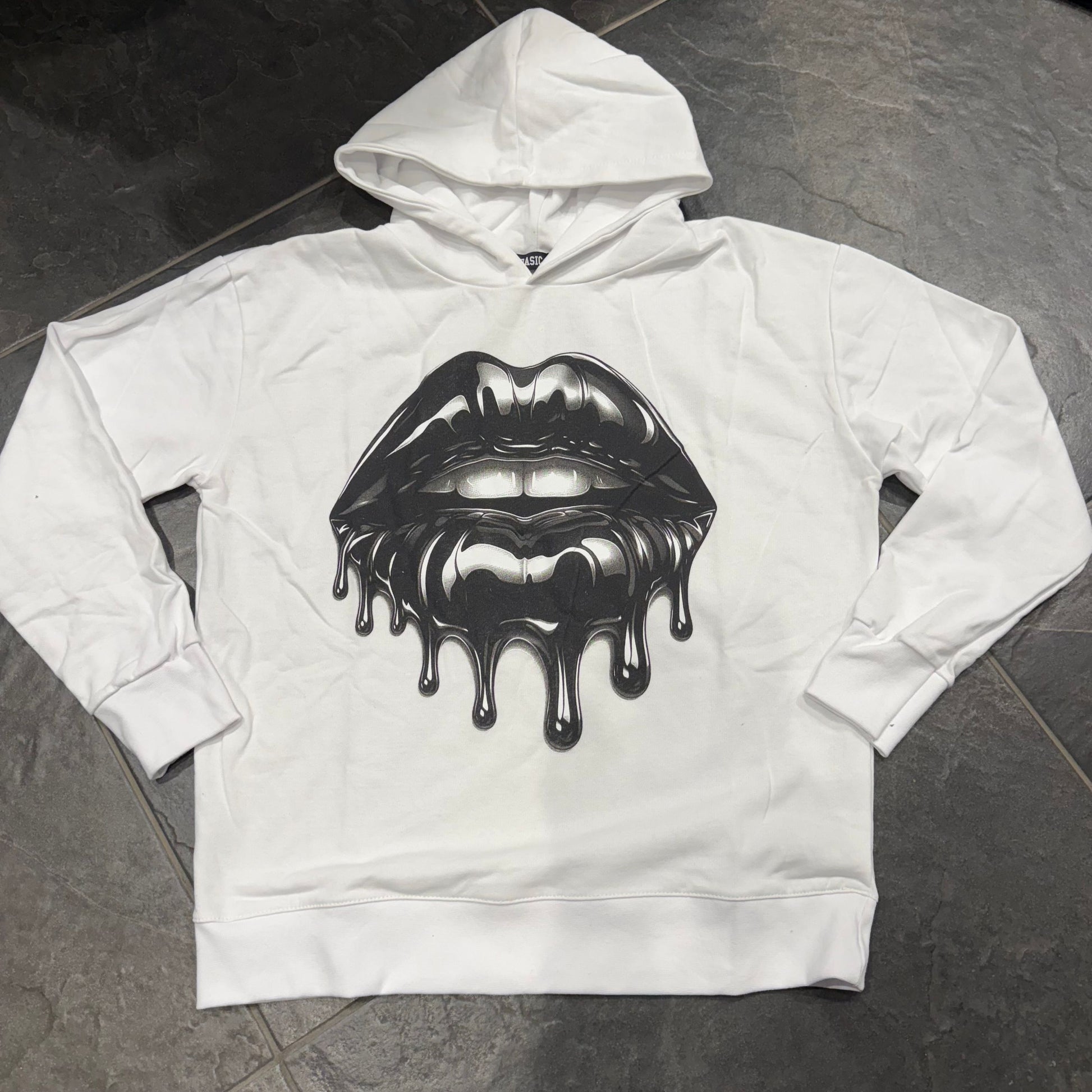 felpa con cappuccio e stampa sul davanti