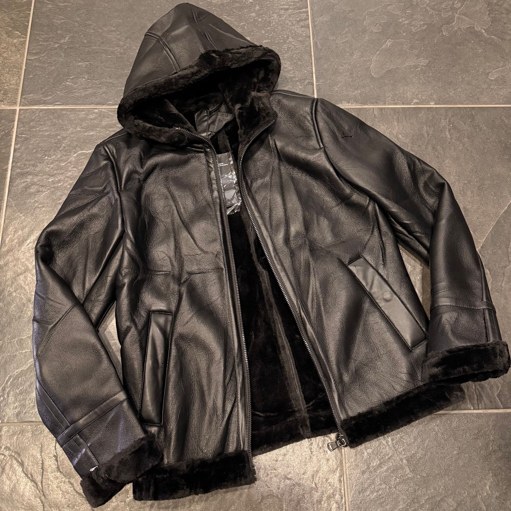 -montone nero con cappuccio