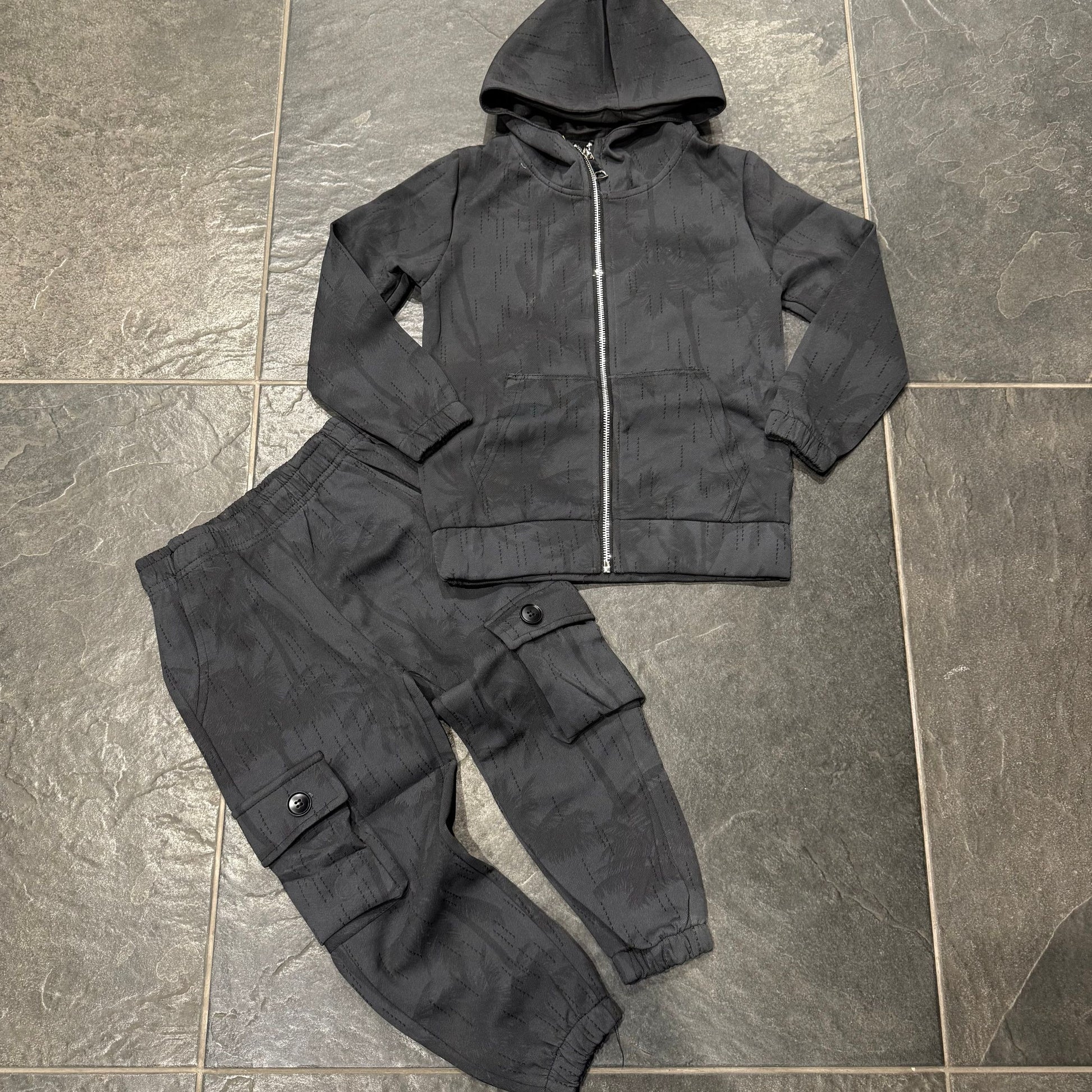 -tuta bimbo con cappuccio, chiusura zip + pantatuta con elastico alle caviglie